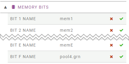 Le nom du Bit Mémoire F représente le nom du Groupe (POOL) et doit donc être enregistré dans l’appareil.